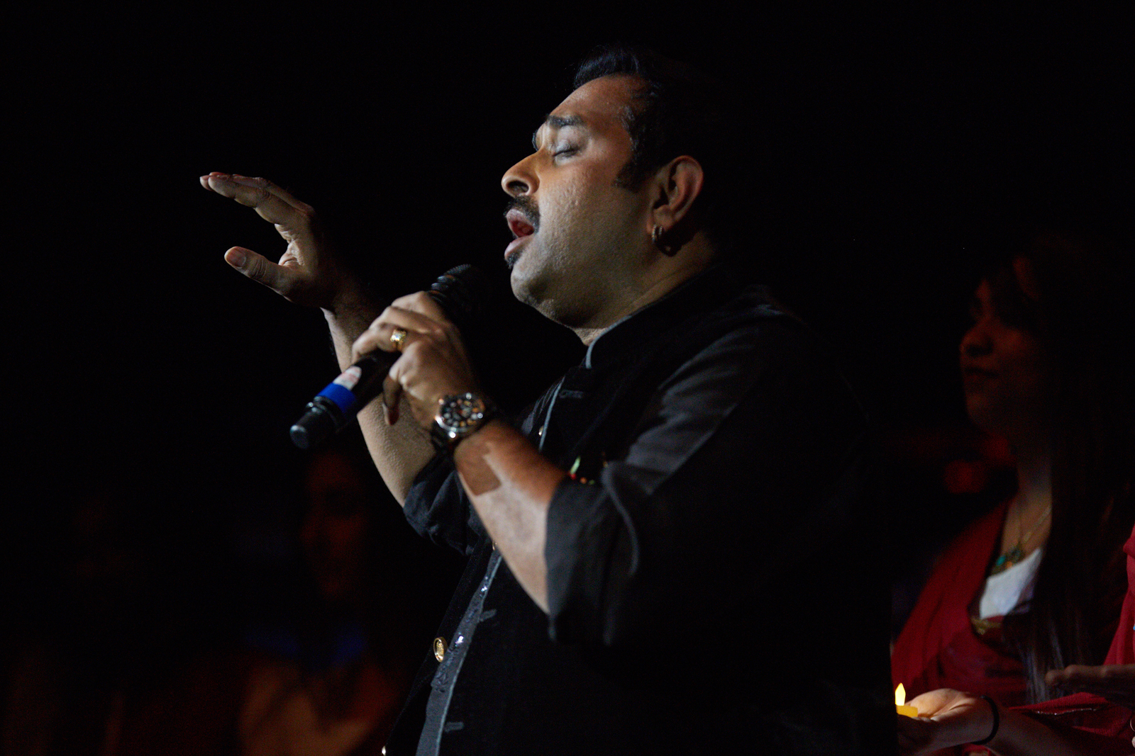 Shankar Mahadevan sings with the Berklee Indian Ensemble during a sold-out show at the Berklee Performance Center on December 13, 2016.