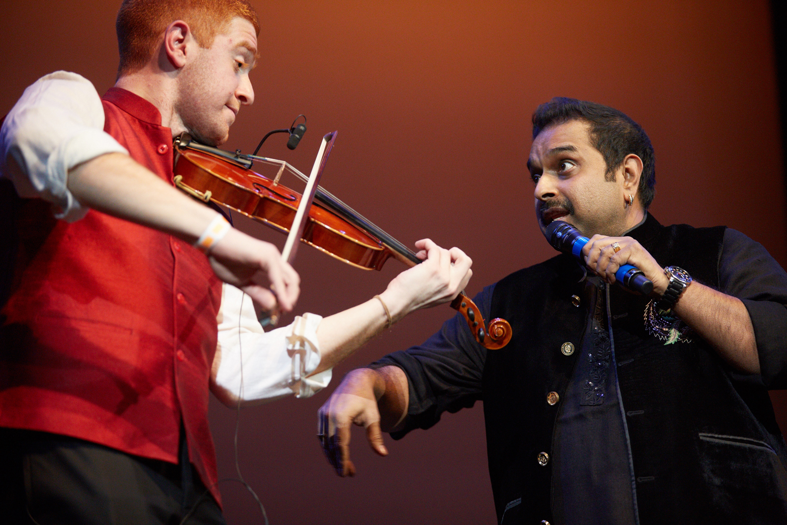 In addressing the crowd at the beginning of the show, Mahadevan joked that the ensemble, which had been working with him since Monday, was so well prepared that “I’m nervous that I should mess it up. They know all their parts perfectly.”