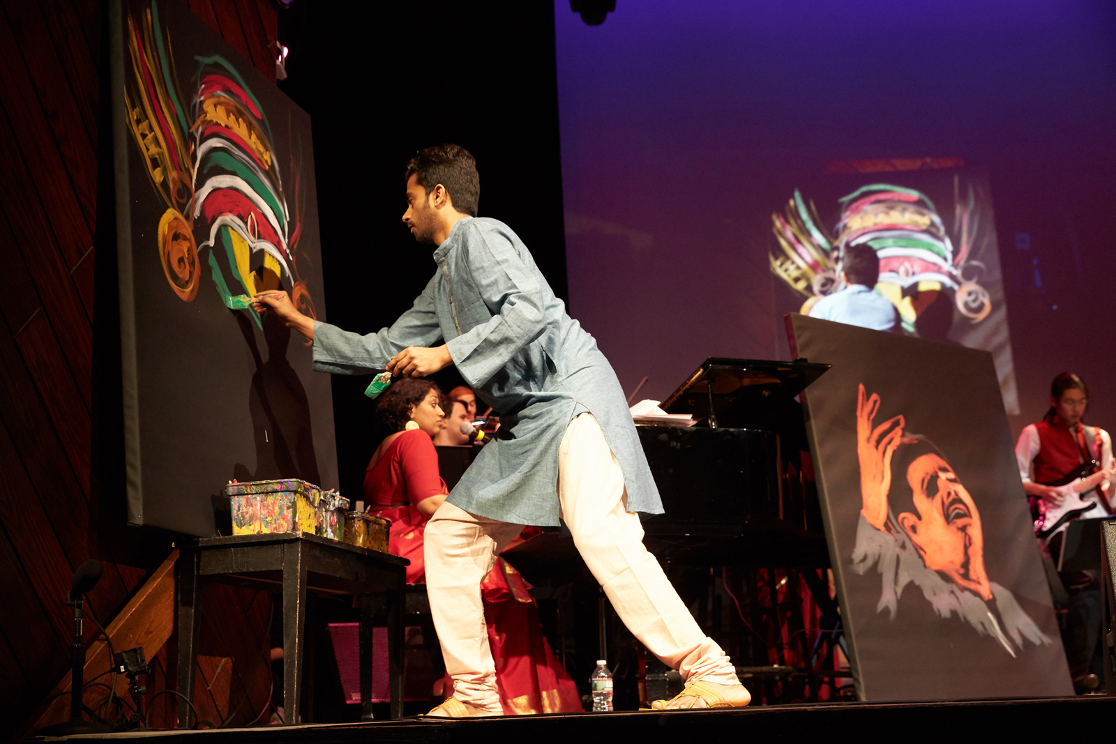 Renowned speed painter Vilas Nayak of Bengaluru, India, composes two pieces as Shankar Mahadevan and the ensemble perform "Tere Naina" and "Sapnon Se Bhare Naina."