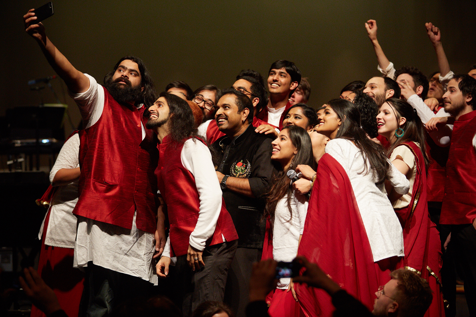 Percussionist Kaushlesh "Garry" Purohit takes a selfie of the jubilant group after the show.
