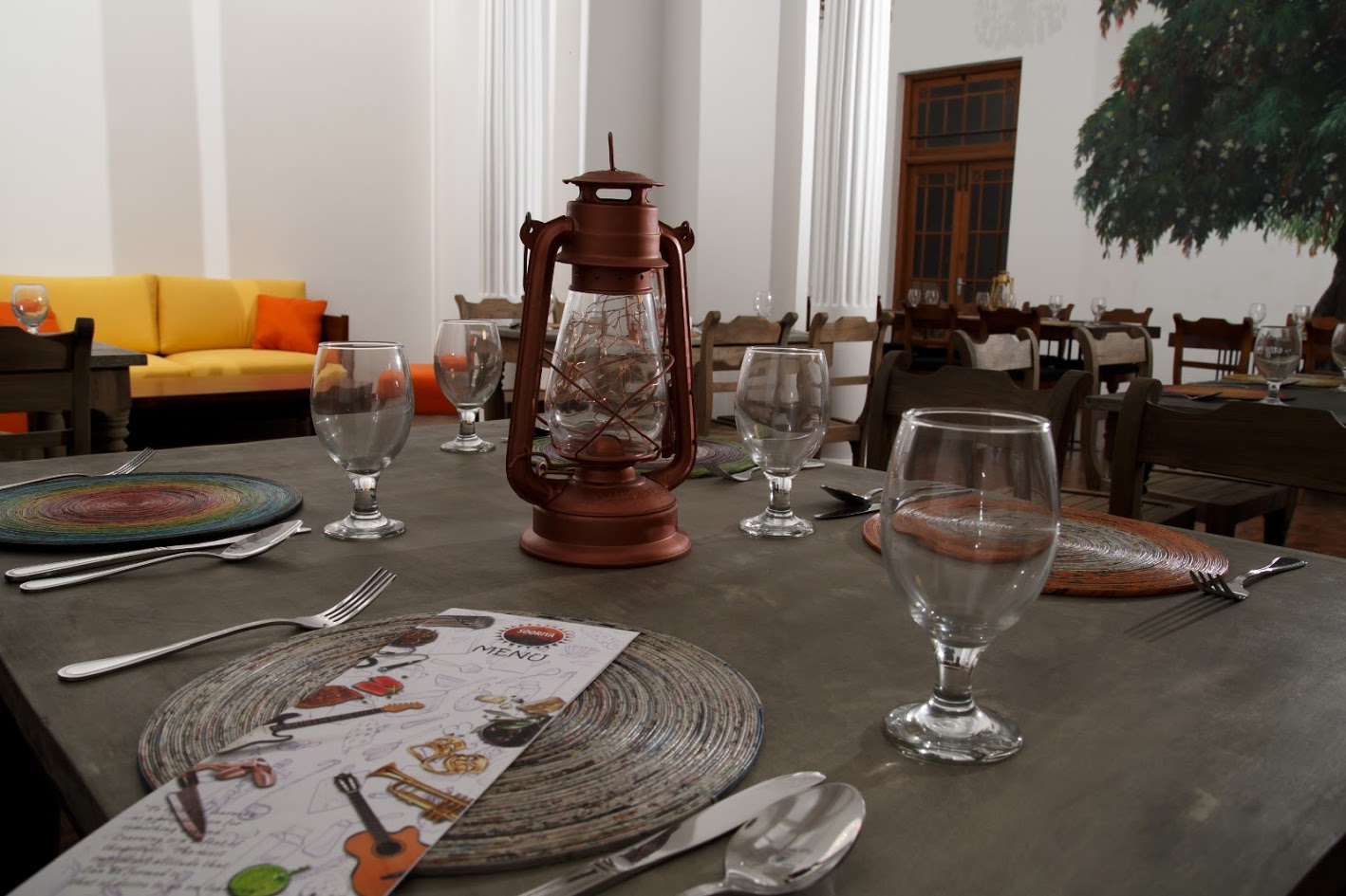 An outdoor dining space at the Sooriya Village
