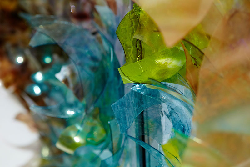 LED-lit, mulitcolored glass shards make up the visual component of the installation.