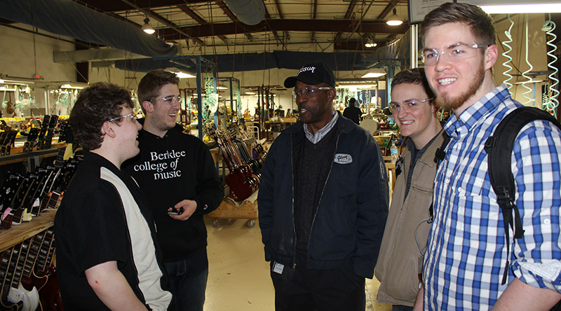 “Students in heaven,” said Stephen Webber, program director of Berklee's Valencia campus' music technology innovation master’s program and a co-organizer of the Nashville trip, as student guitarists got to test out some of the inventory at the Gibson USA electric guitar plant.