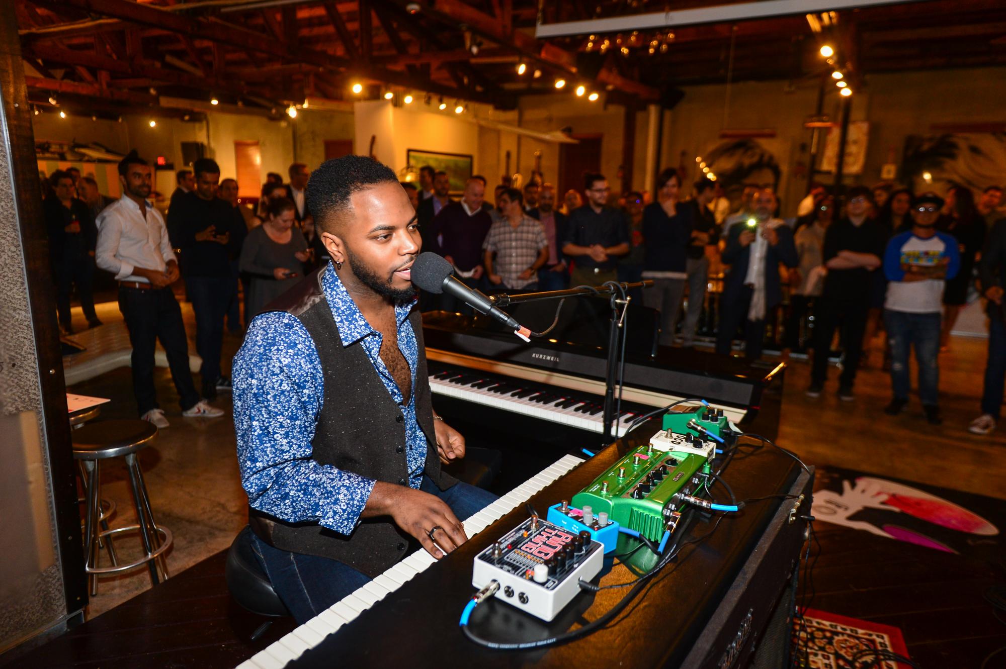 Desmond "D.J." Scaife Jr. B.M. '16 performs at the U-LAB event in Miami.